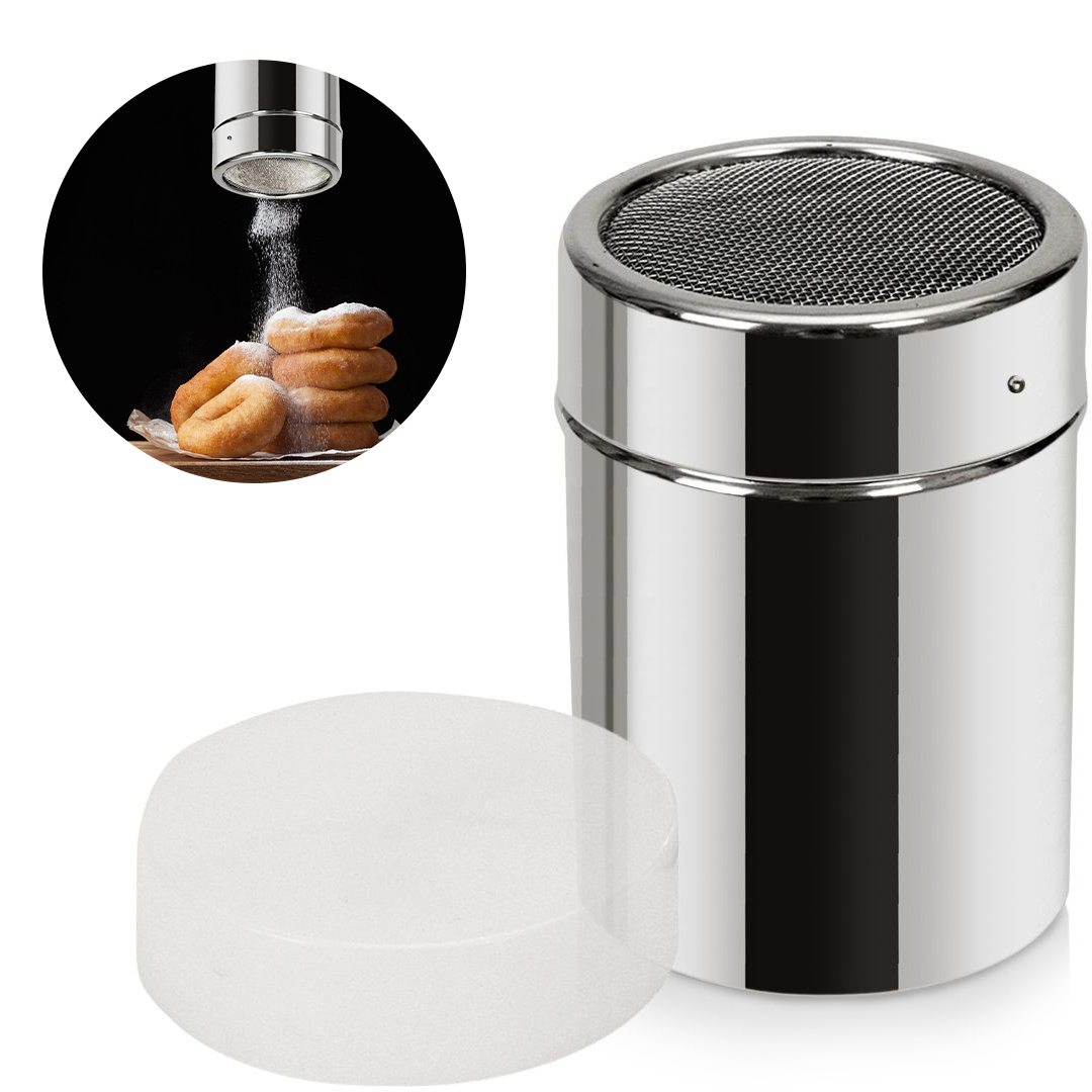 Pojemnik o pojemności 300 ml i średnicy 7 cm wykonany jest z wysokiej jakości stali nierdzewnej, a pokrywka z przezroczystego tworzywa. Wyposażony w gęste sitko, idealnie nadaje się do precyzyjnego dozowania dodatków do kawy lub deserów, takich jak kakao, czekolada, cynamon, przyprawy czy cukier puder.