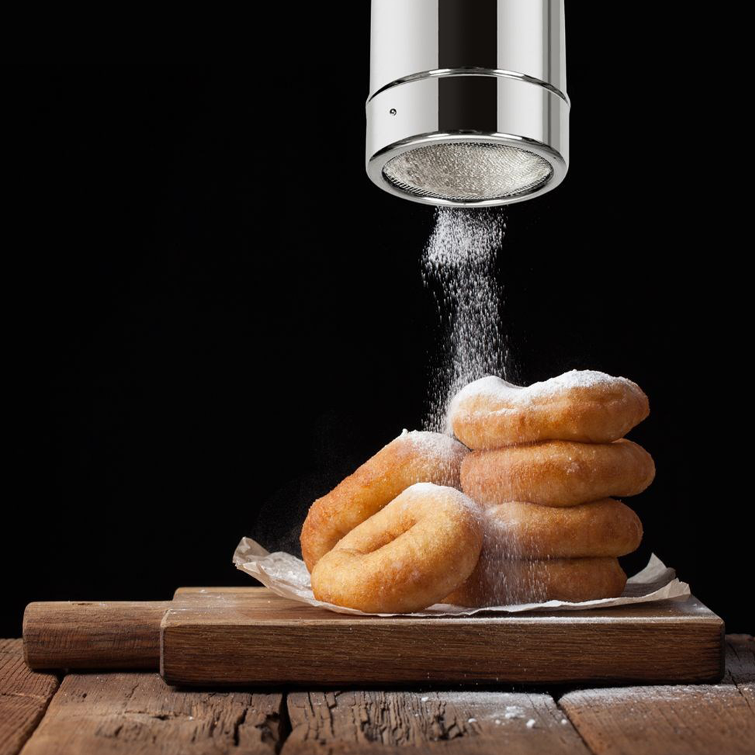 - SITKO: Posiada gęste sitko, idealne do dozowania cukru pudru, kakao, czekolady, kawy, posypki czy cynamonu. Może zastąpić tradycyjną cukierniczkę.