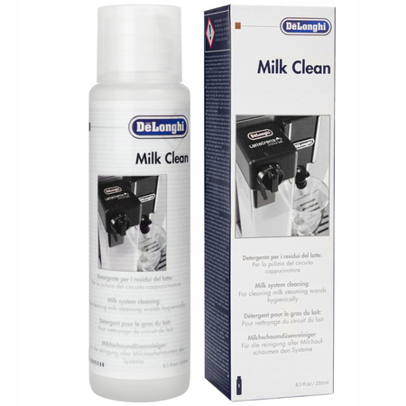 Aby zapewnić odpowiednią kondycję systemu spieniania mleka, zalecamy stosowanie środka czystości De'Longhi SER3013. Ten produkt skutecznie chroni delikatne elementy ekspresu, zapewniając im długotrwałą czystość. Usuwa zanieczyszczenia i nadmiar tłuszczu z wszystkich części, które mają kontakt z mlekiem.