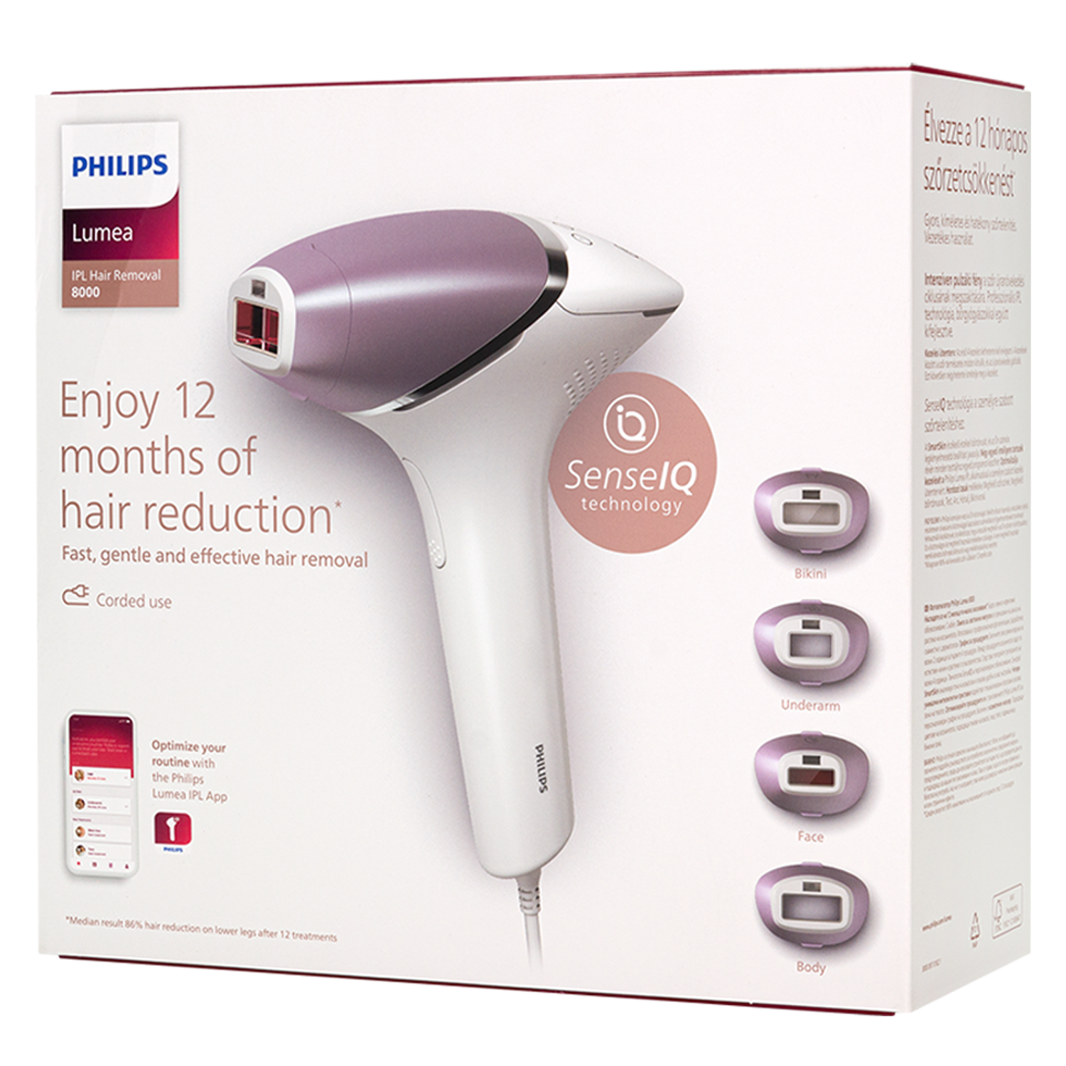 Technologia SenseIQ z czujnikiem SmartSkin automatycznie dobiera optymalny poziom intensywności światła do Twojego typu skóry, zapewniając skuteczność i bezpieczeństwo.