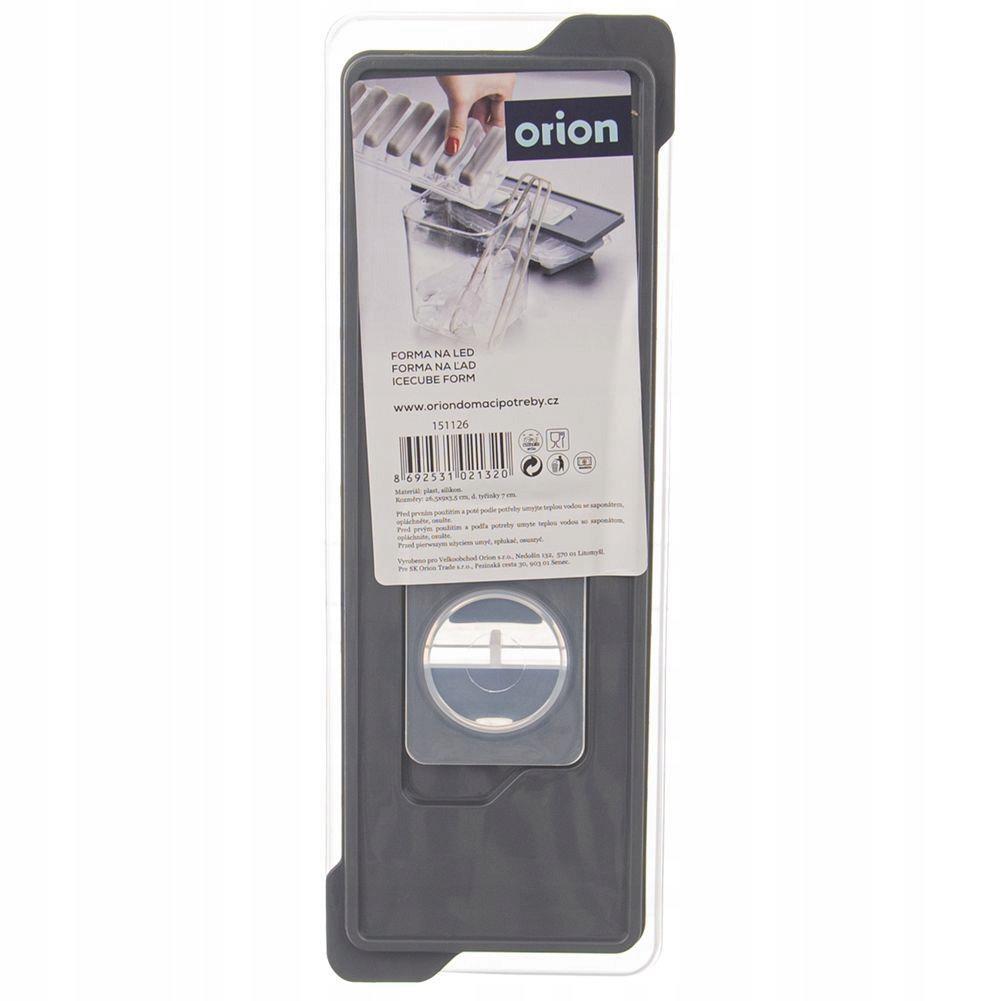 Forma na lód do przygotowania 9 podłużnych kostek lodu. Posiada elastyczne dno dzięki czemu wyciąganie kostek lodu będzie niezwykle łatwe. Kostki wykorzystamy do wody, napojów oraz drinków alkoholowych. W foremce możemy zamrozić również soki owocowe oraz sorbety otrzymując zamrożone napoje w formie lodów. Dzięki niej możemy schłodzić napoje w butelce do których nie mieszczą się kwadratowe kostki. Forma występuje w różnych kolorach, nie ma możliwości wyboru - wysyłamy losowo. Oryginalny produkt czeskiej marki Orion. Wyprodukowano zgodnie z europejskimi standardami.