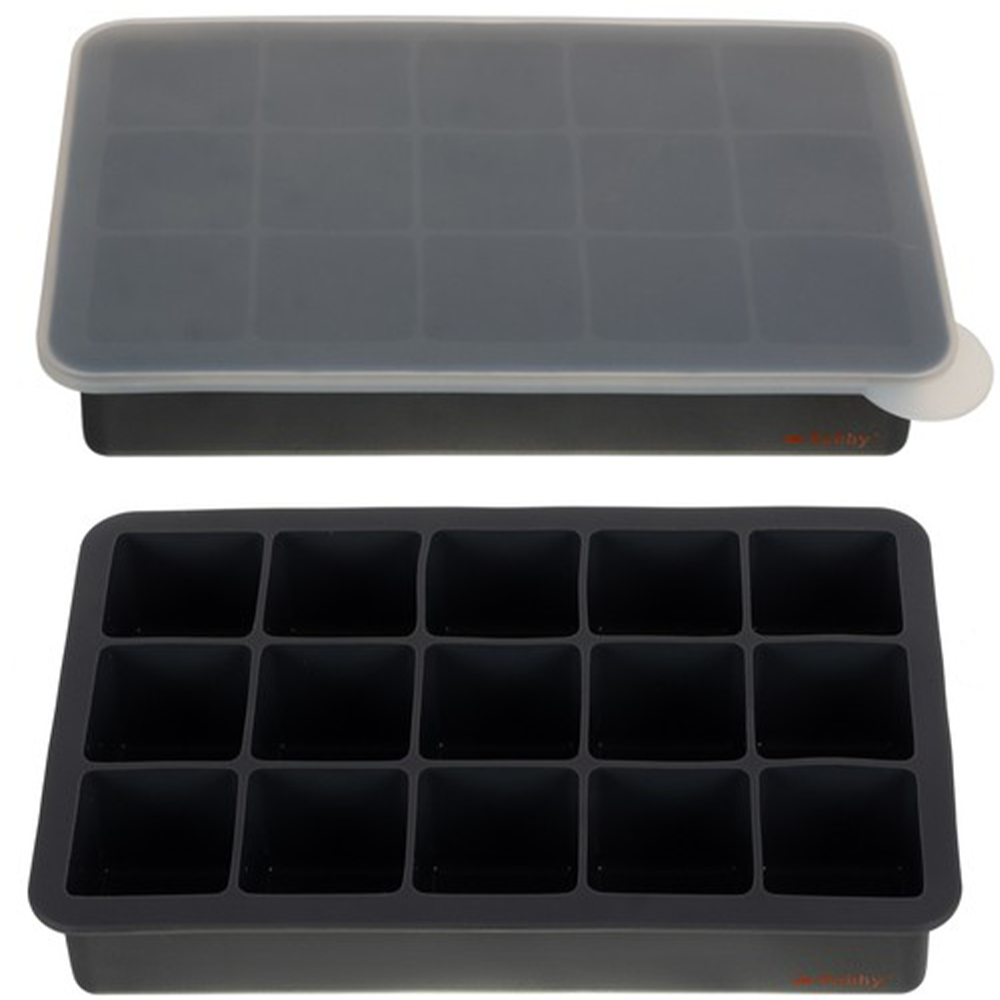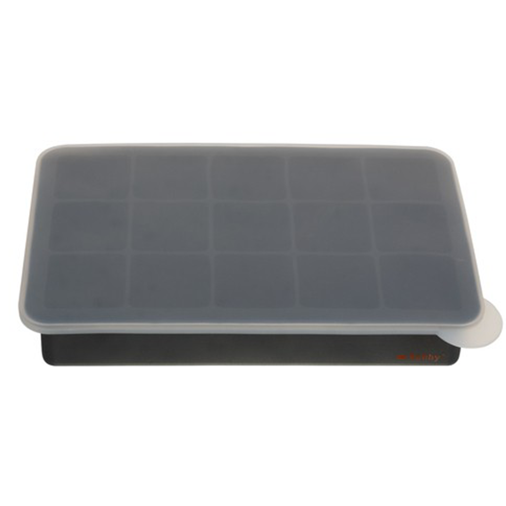 - Pokrywka: przylegająca pokrywka, która zapobiega rozlewaniu i zapewnia równe kostki.