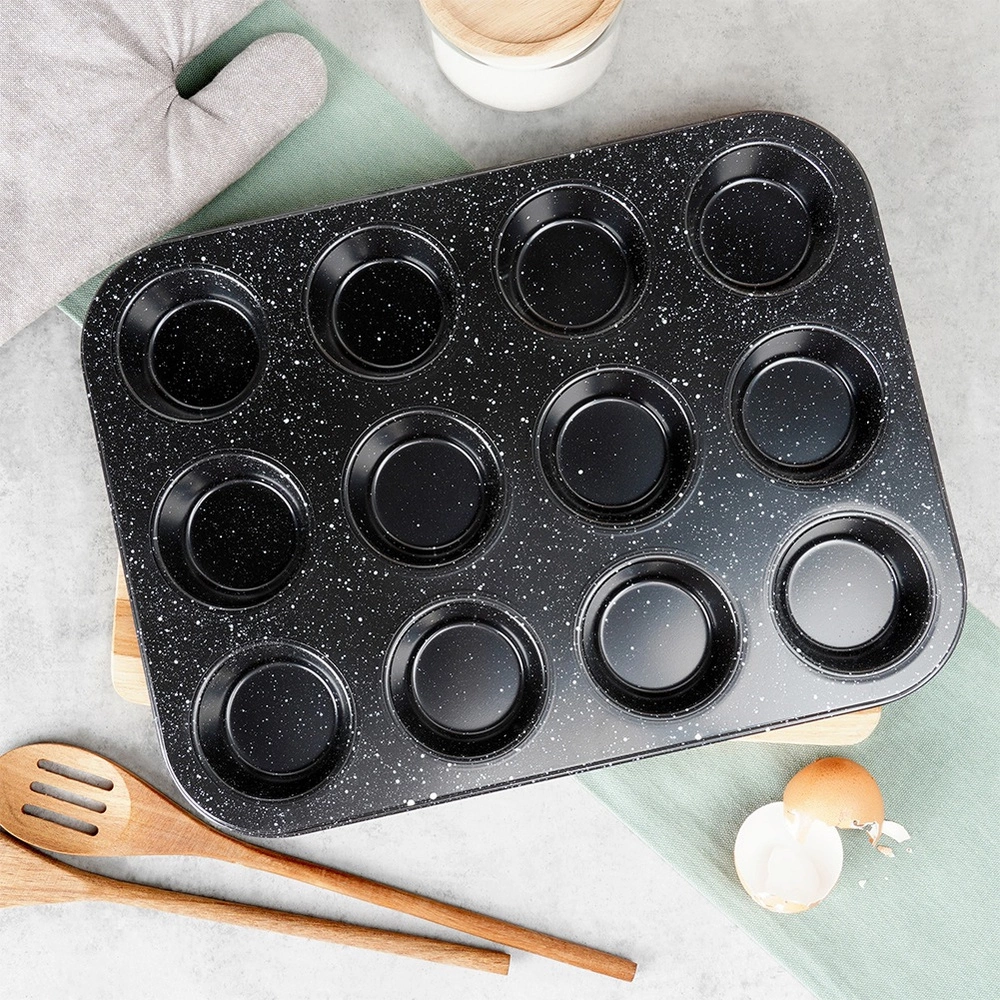 Prostokątny kształt i elegancka granitowa powłoka sprawiają, że forma prezentuje się estetycznie i pasuje do każdej kuchni. Nadaje się nie tylko do klasycznych muffinek, ale także do kreatywnych dań – zarówno na słodko, jak i wytrawnie.