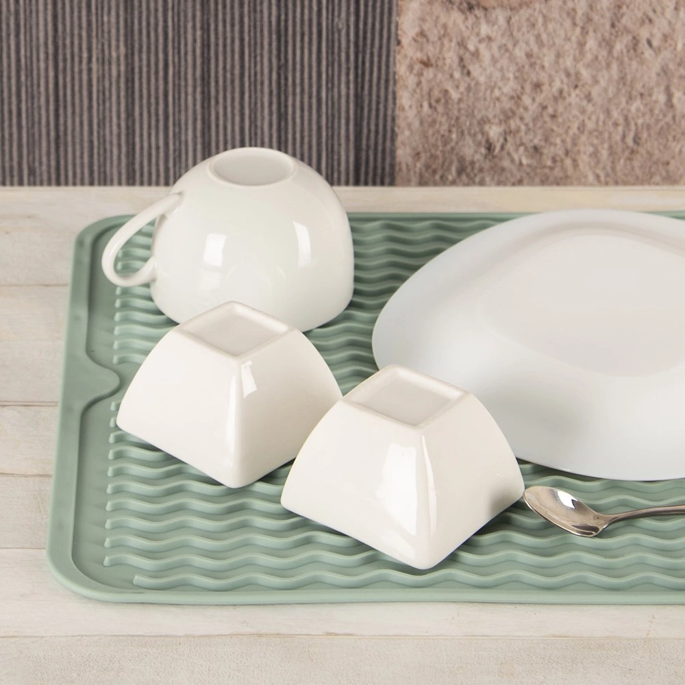 - Z PROFILOWANYMI ROWKAMI - Mata do suszenia naczyń ma specjalnie wyprofilowane rowki, które umożliwiają odpływ wody z jednej strony. Idealna do suszenia delikatnych naczyń, mata zapewnia im stabilność podczas suszenia