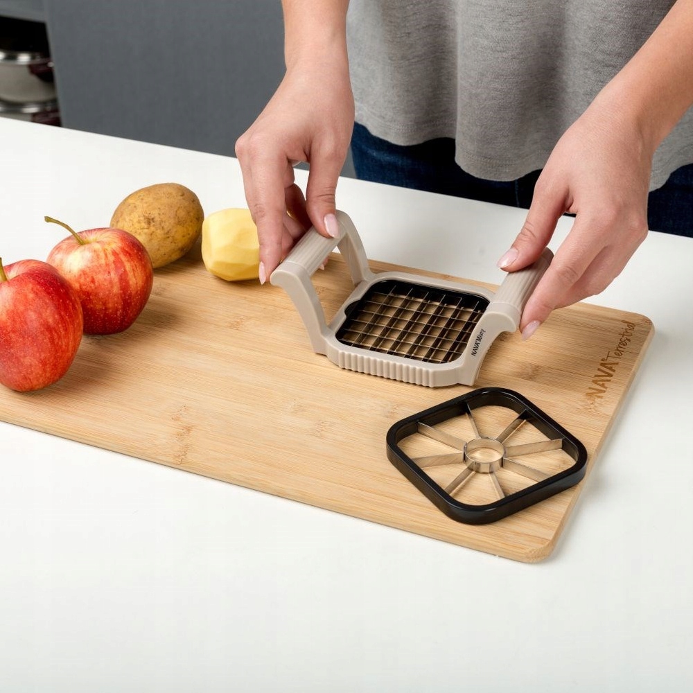 Krajalnica do warzyw i owoców o uniwersalnym zastosowaniu. Świetnie sprawdzi się do krojenia owoców na kawałki np. jabłek, ziemniaków, czy nawet frytek. Wygodna w użytkowaniu. Pozwoli uzyskać równe kawałki krojonych produktów. Przydatna w każdej kuchni. Oryginalny produkt greckiej marki NAVA. Wyprodukowano zgodnie z europejskimi standardami.