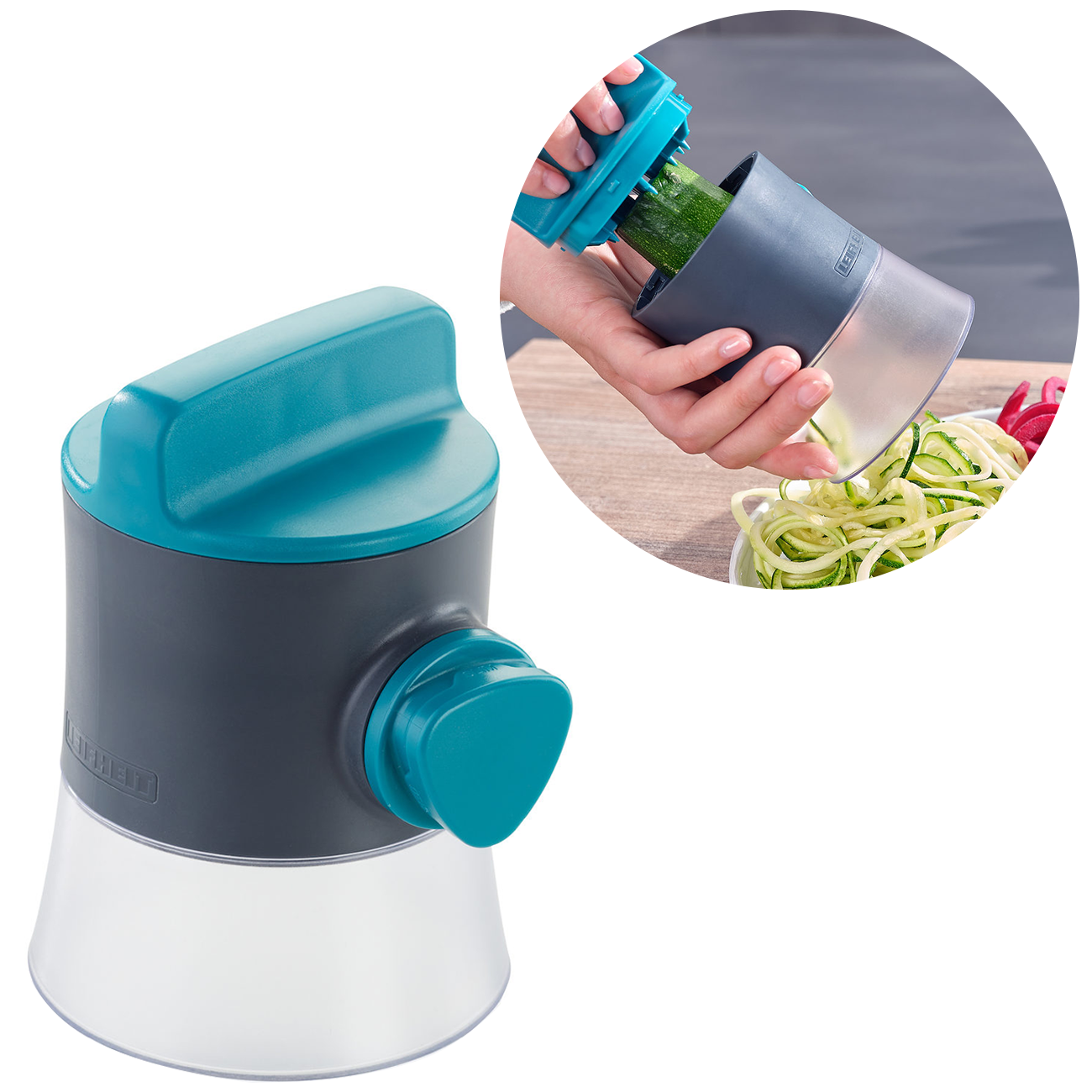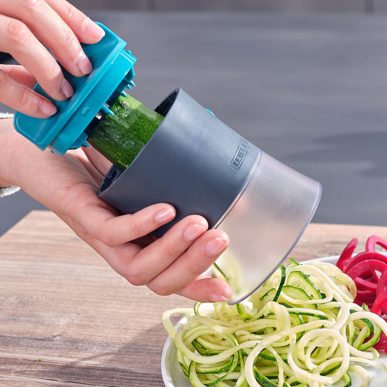 Są one idealne do ozdabiania sałatek, mięs, deserów i zdrowych przekąsek, tworząc długie, naturalne serpentyny, które doskonale zdobią potrawy. Krajalnica spiralna ręczna cechuje się prostym użytkowaniem i wysokim poziomem bezpieczeństwa. Warzywo lub owoc wsuwa się na wypustki uchwytu, umieszcza wewnątrz krajalnicy i obraca poręcznym pokrętłem. Dodatkowa osłona na palce chroni przed skaleczeniami, a model ten sprawdza się także przy obróbce większych produktów. Łatwo utrzymać go w czystości, ponieważ nadaje się do mycia w zmywarce.