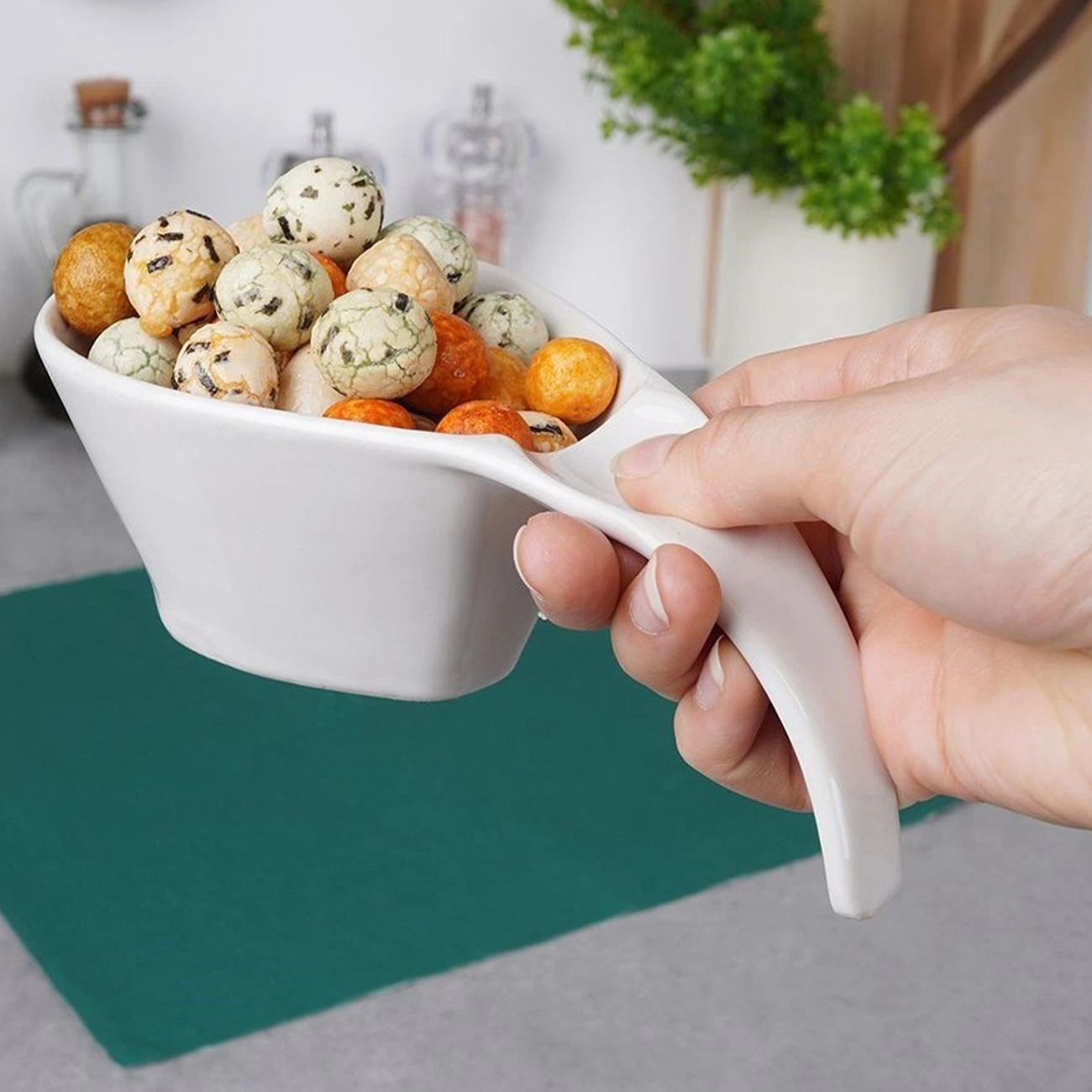 - PRZYDATNA - Miseczka na przekąski z uchwytem o pojemność 190 ml i wymiarach 18,5 x 9,5 x 6 cm. Doskonale nadaje się do serwowania różnych przekąsek i małych dań.