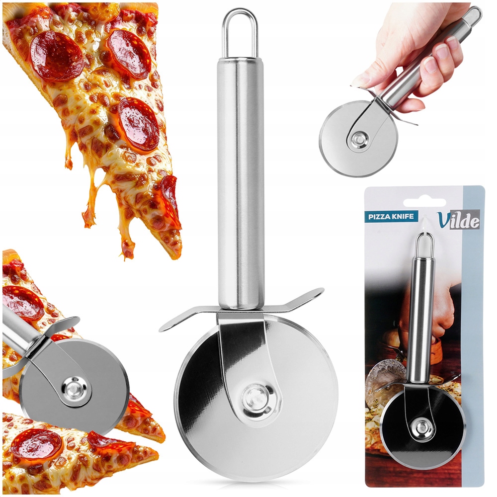 Okrągły nóż do krojenia pizzy zapewni komfortowe użytkowanie. Uchwyt wygodnie leży w dłoni. Z jego pomocą krojenie pizzy na równe kawałki będzie wyjątkowo proste. Łatwy w czyszczeniu, wygodny w użytkowaniu. Oryginalny produkt marki Vilde. Wyprodukowano zgodnie z europejskimi standardami.