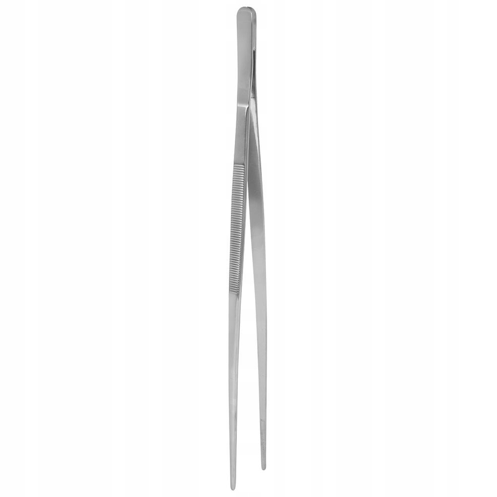 Duża, stalowa pęseta kuchenna ułatwia i usprawnia wiele zadań w kuchni. Niezwykle wygodna w użytkowaniu i łatwa w czyszczeniu. Szczypce zapewniają precyzyjne obracanie mięsa i innych potraw podczas gotowania, smażenia lub grillowania. Dzięki swojej długości i wytrzymałej konstrukcji, pinceta pozwala na delikatne manipulowanie potrawami zapobiegając ich rozerwaniu lub uszkodzeniu. Szczypce kuchenne doskonale sprawdzą się do dekorowania potraw, składania rulonów z cienkiego mięsa lub warzyw, a nawet wyjmowania ości z ryby.