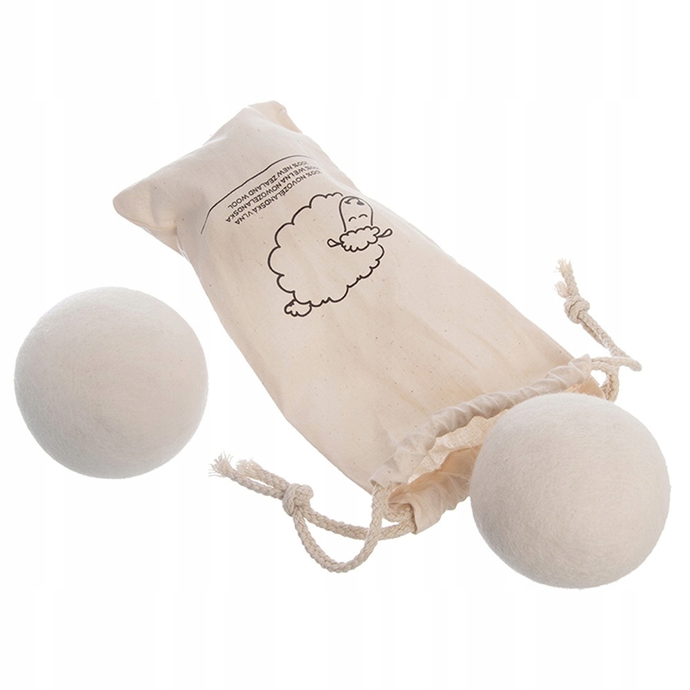 - Zestaw 3 piłek do suszarki - Piłki do o średnicy 7 cm, doskonale absorbują wilgoć podczas cyklu prania. Dzięki temu skracają czas suszenia ubrań oraz poprawiają ich świeżość. W zestawie znajdują się 3 szt. w bawełnianym woreczku.