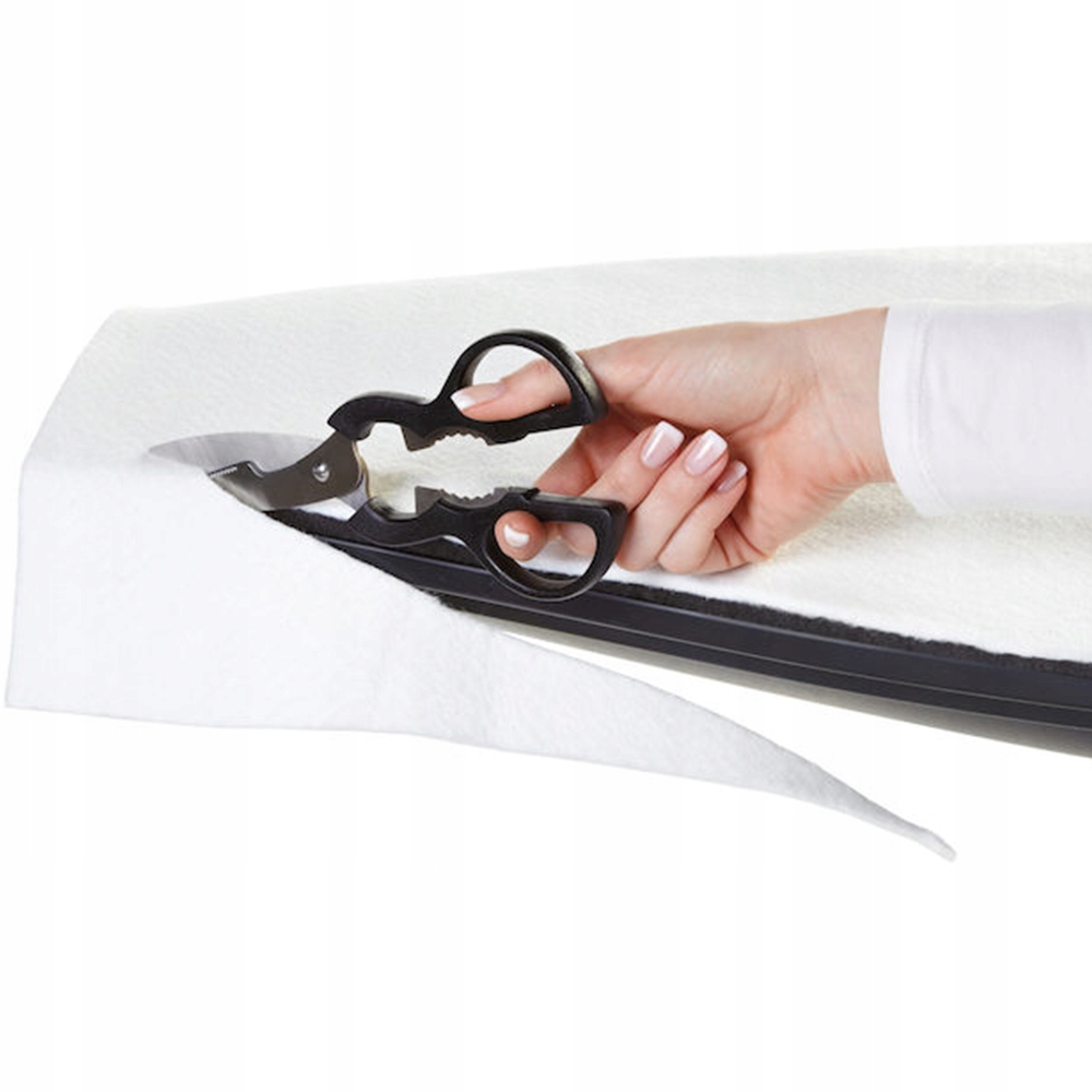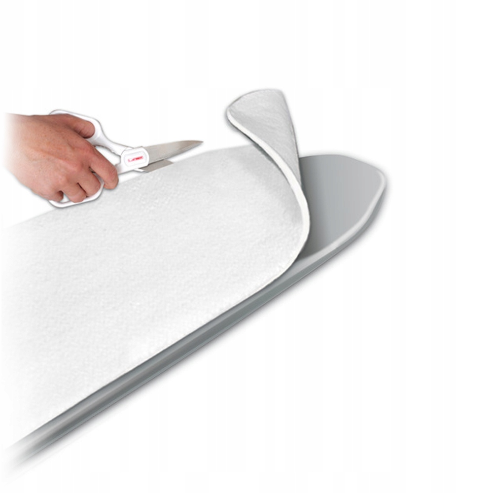 Biały podkład marki Leifheit pasuje do wszystkich desek o maksymalnych wymiarach blatu 140 x 45 cm. Jego rozmiar jest uniwersalny – można go przyciąć tak, by leżał bardzo dobrze również na mniejszych deskach. Docinanie jest łatwe i nie wymaga wysiłku.