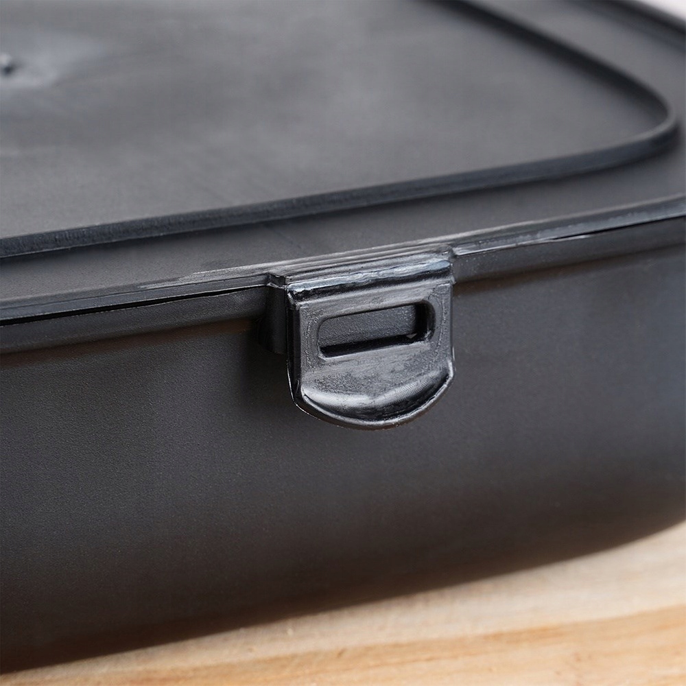 - Lekki i wytrzymały - Wykonany z najwyższej jakości tworzywa w czarnym, matowym kolorze. Pojemnik jest kompaktowy i lekki, a jednocześnie solidny i wytrzymały. Tworzywo, z którego wykonany jest pojemnik nie posiada szkodliwego BPA (bisfenolu). Bezpieczny dla zdrowia i neutralny dla żywności.