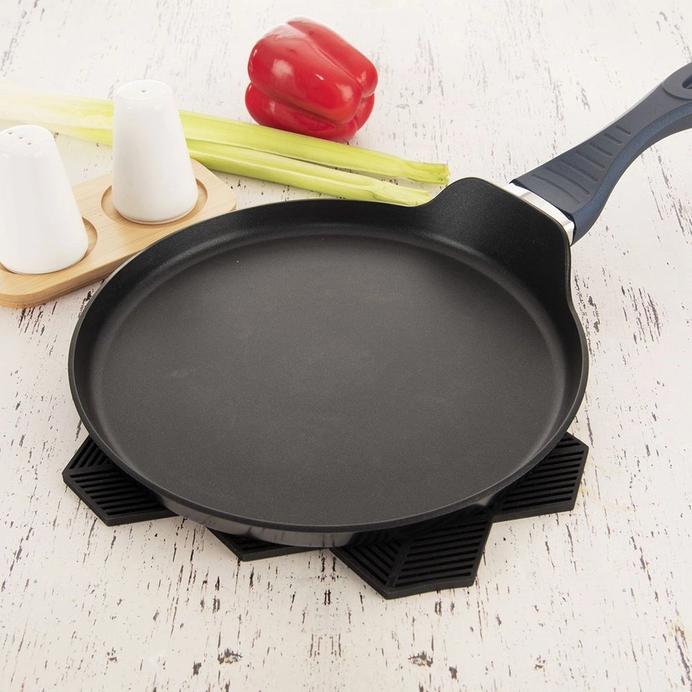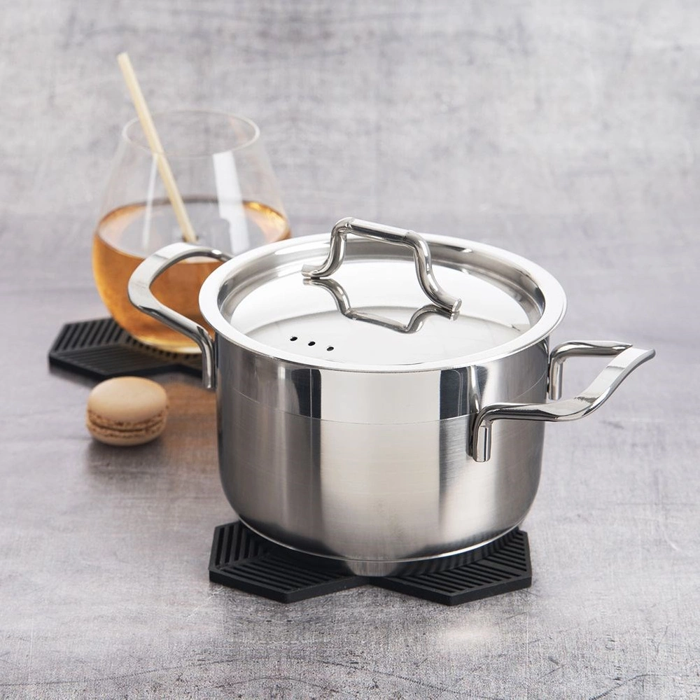 Bezpieczne odkładanie gorących naczyń jest teraz prostsze niż kiedykolwiek. Podstawka chroni powierzchnie przed zarysowaniami, przypaleniami i zniszczeniami, które mogą wystąpić w wyniku kontaktu z wysoką temperaturą. To idealne rozwiązanie do kuchni, które pozwala na wygodne serwowanie gorących potraw bez ryzyka uszkodzenia stołu czy blatu kuchennego.