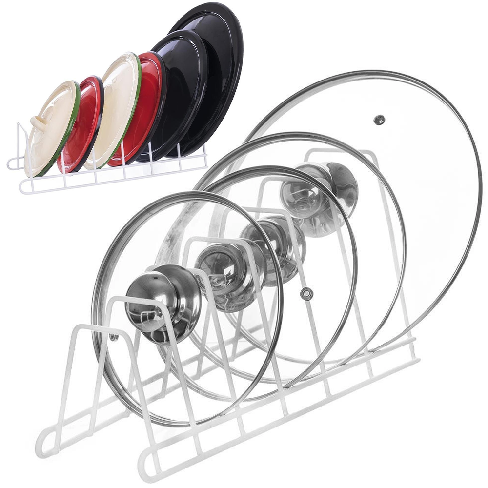Organizer pomieści 6 talerzy, pokrywek lub desek, utrzymując je w pozycji pionowej, co zapobiega ich uszkodzeniom i zapewnia porządek w szufladach oraz szafkach.