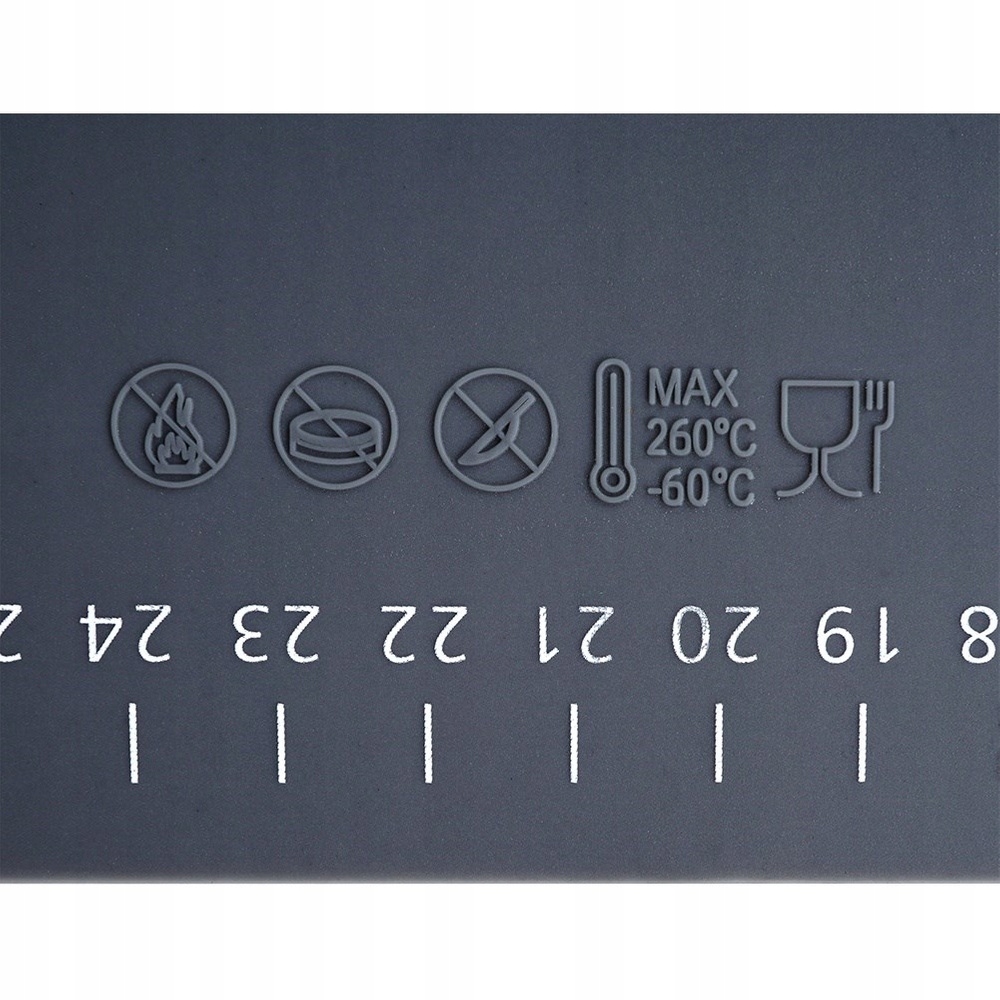 - Odporna na temperaturę, nadaje się do piekarnika, mikrofalówki i zmywarki - Stolnica jest odporna na niską oraz wysoką temperaturę od -40°C do +260°C. Możemy używać jej również jako maty do pieczenia w piekarniku. Nadaje się do mycia w zmywarce do naczyń, a także można używać jej w zamrażalniku oraz mikrofalówce.