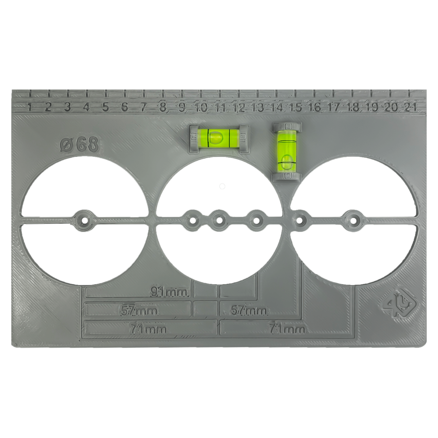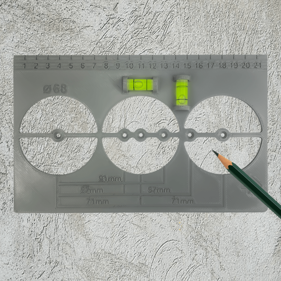 ✅ Wbudowana libella: Zapewnia idealne wypoziomowanie szablonu dla precyzyjnego montażu, co eliminuje ryzyko nierównomiernego rozmieszczenia puszek.