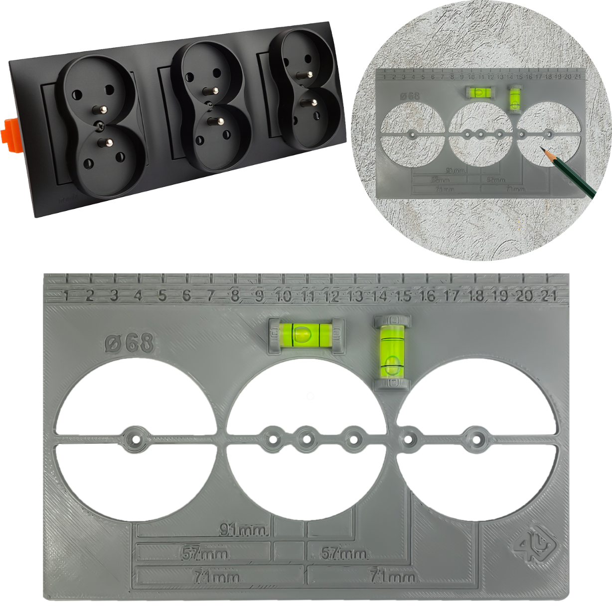 Dzięki temu szablonowi do wymiarowania otworów puszek prądowych z libellą poziomicą, instalacja elektryczna staje się łatwiejsza i bardziej precyzyjna.