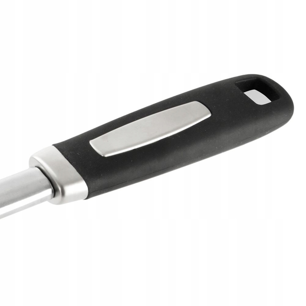 - ALUMINIOWY - Wykonany w całości z najwyższej jakości aluminium w srebrnym kolorze. Uchwyt jest wykończony gumą w kolorze czarnym, co zapewnia pewny chwyt.