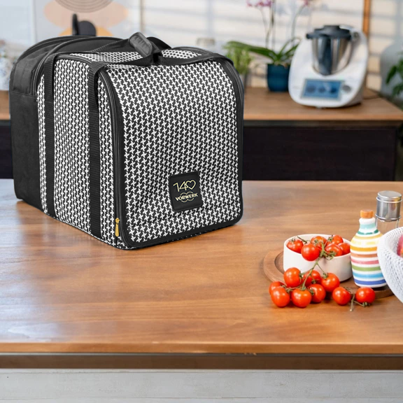 Torba została zaprojektowana z myślą o przechowywaniu nie tylko samego urządzenia, ale także wszystkich niezbędnych akcesoriów. Posiada dodatkowe przegrody na książkę kucharską, Varomę oraz specjalne kieszenie na drobniejsze elementy, takie jak kopystka, miarka i motylek, co zapewnia wygodę i porządek podczas transportu.