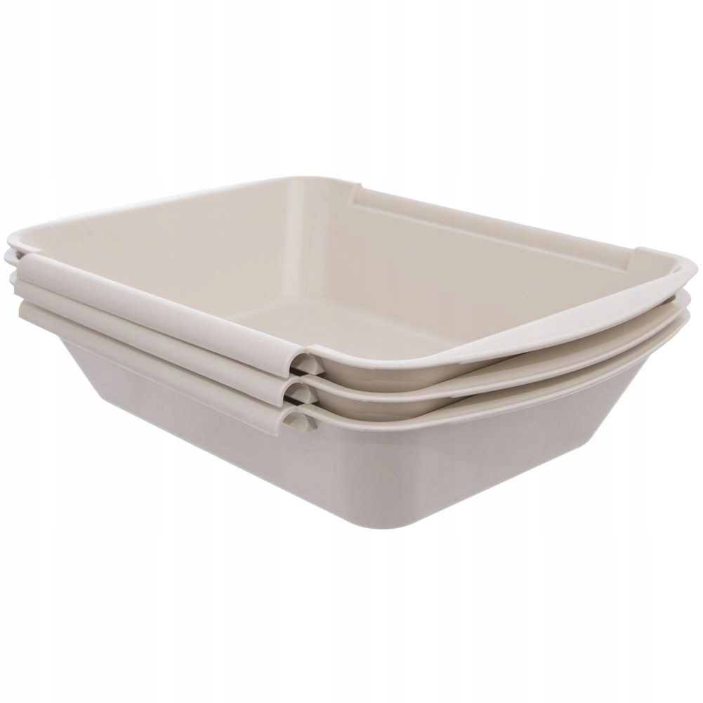 - PRZYDATNE - W skład zestawu wchodzą trzy pojemniki tej samej wielkości. Każdy z pojemników ma pojemność 1,5 litra. Wymiar całkowity pojemników wynosi 26 x 20 x 5,5 cm. Wykonane z wysokiej jakości tworzywa w kolorze beżowym.
