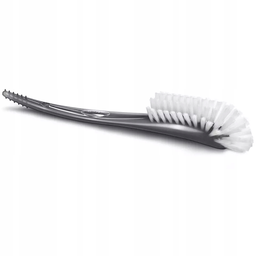 Zakrzywiona główka i wyprofilowany uchwyt szczotki umożliwiają dokładne czyszczenie butelek o szerokim otworze, smoczków oraz akcesoriów do karmienia.